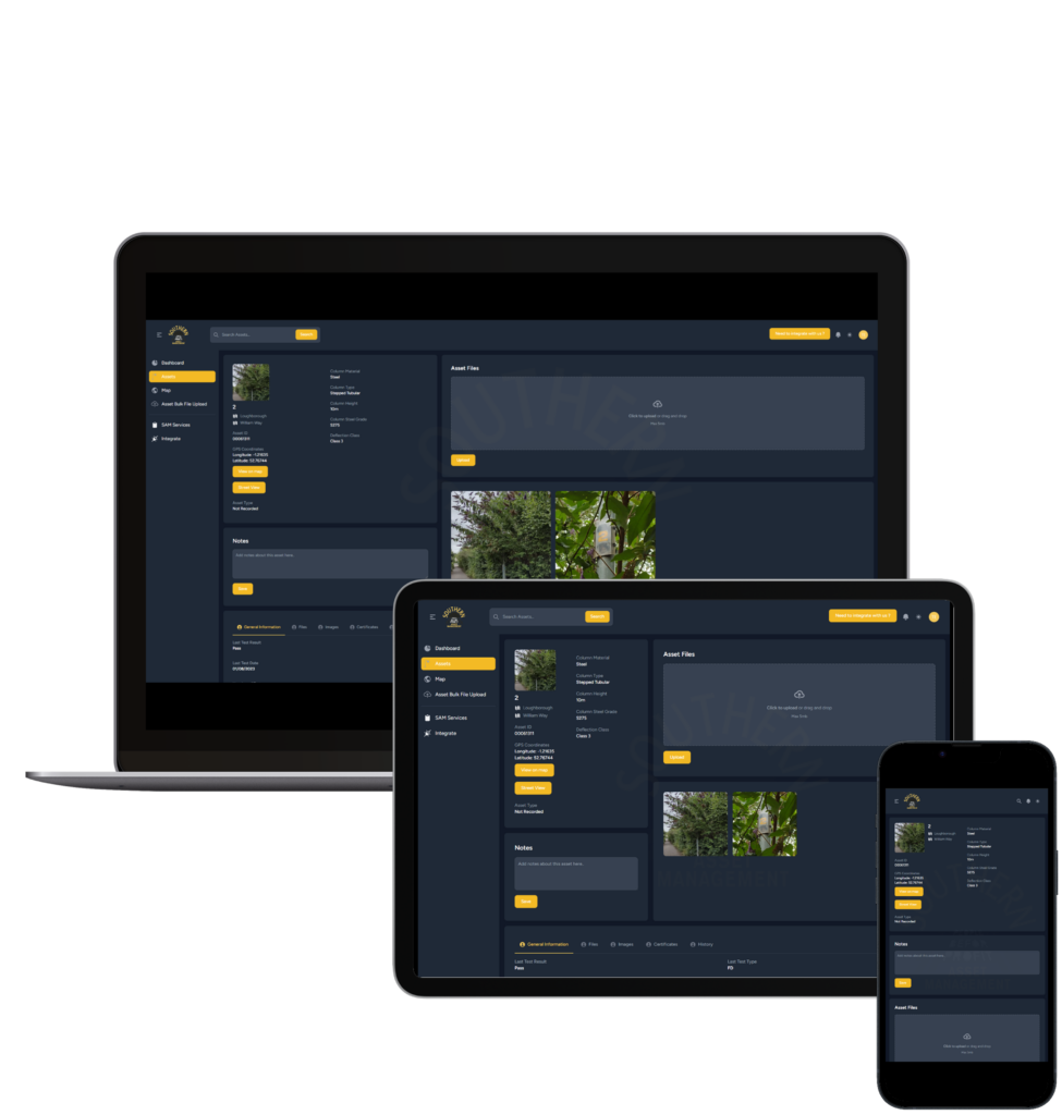 Your assets data will be shown in detail on your asset file. Each asset has a file containing all data we have collected; Images, certifications, testing results and recommendations. You can even upload your own data and notes to these files for your records.